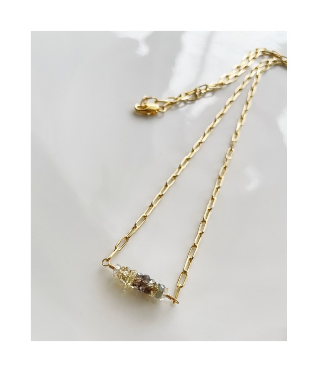 チャームが浮いて見える、テグスのネックレス。 夏には涼しげでおすすめです。 【material】 クォーツ 【キーワード】 ・日常に遊びや楽しみを見出す ・真心 ・純粋さ