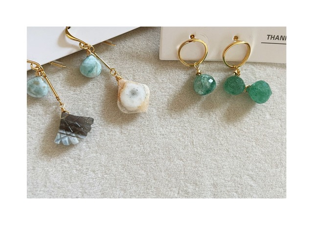 石の美しさ。 透明感。 綺麗だなあと何度見ても思い、気がついたら時間が経っている、という子です。 ※こちらはイヤリングに変更ができません。 【material】 ベリル、シリマナイト 【キーワード】 ・チャーム(魅了) ・健全な美しさ ・あなたらしく生きる