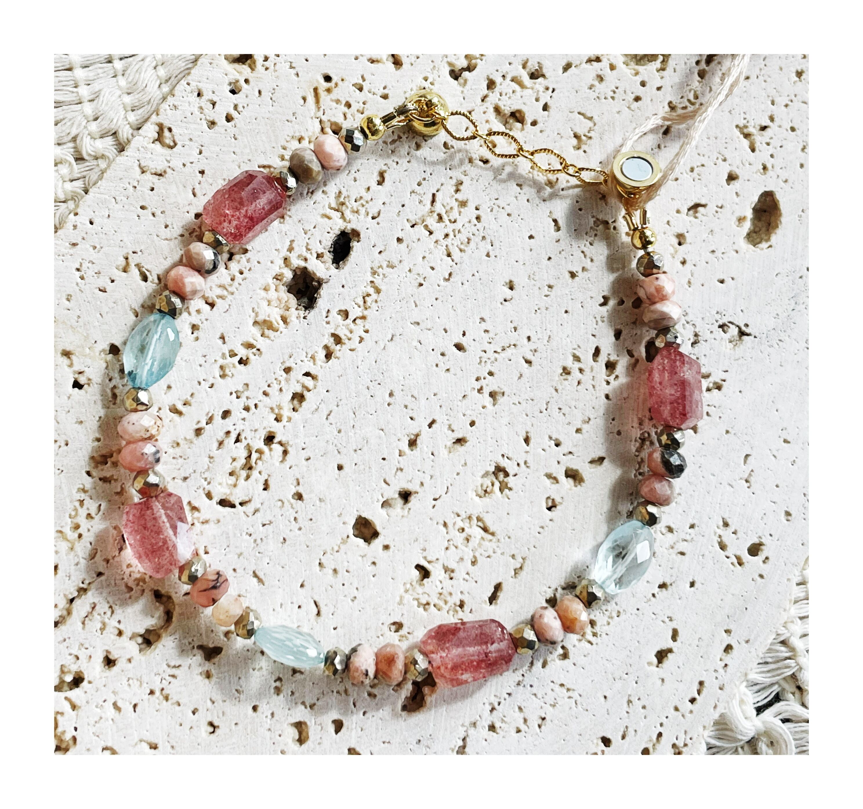 ストロベリークォーツ、アクアマリン、インカローズ、ゴールデンパイライト