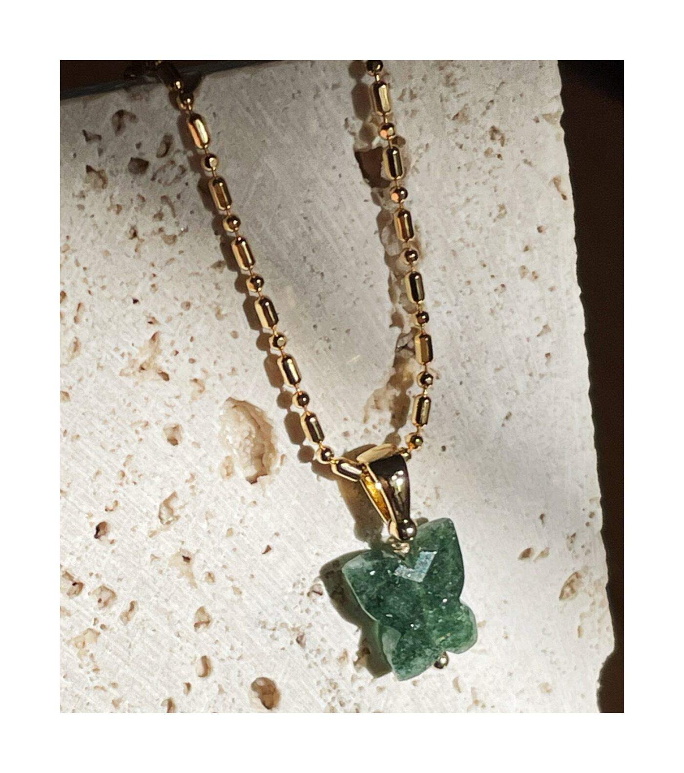 グリーンストロベリークォーツバタフライの一粒ネックレスです。