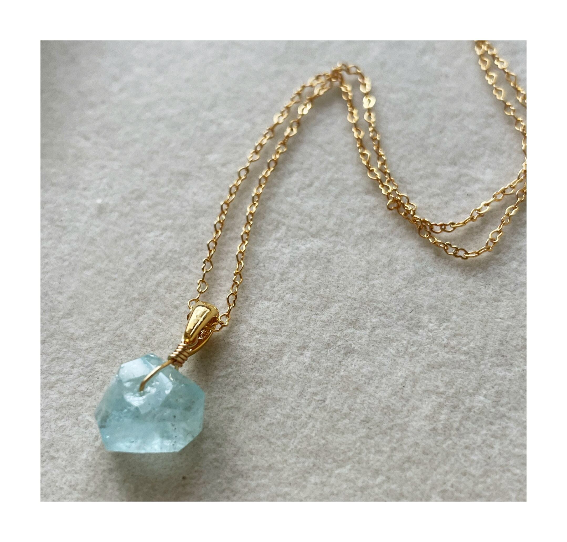存在感のあるアクアマリン一粒をネックレスに仕立てました。