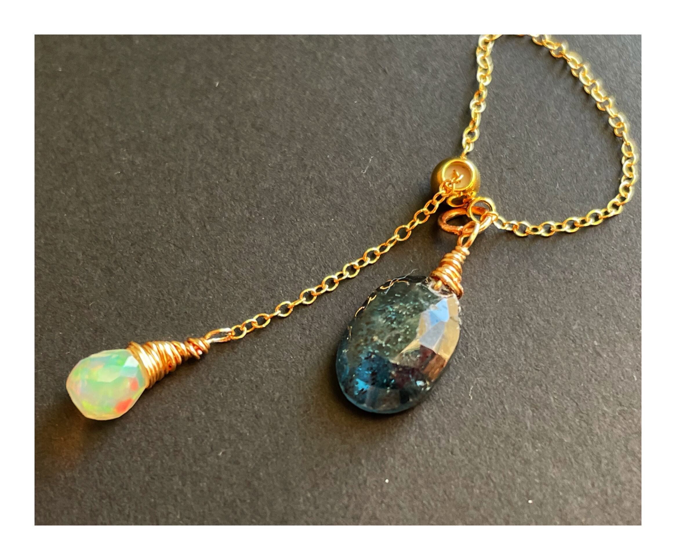 インディゴカイヤナイトの調和力と叡智、そして闇に煌めくオパールのコンビです。