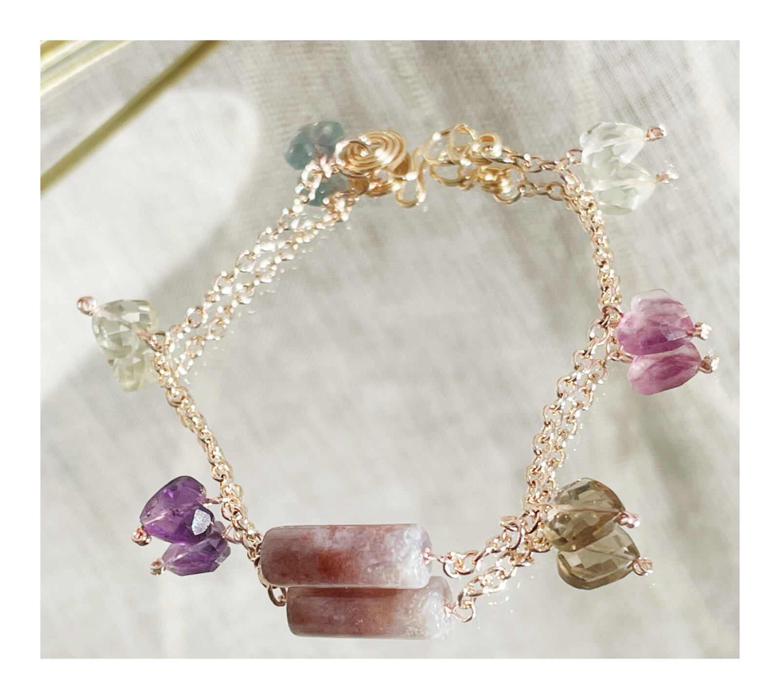 -アゲート、フローライト、スモーキークォーツ、グリーンアメジスト