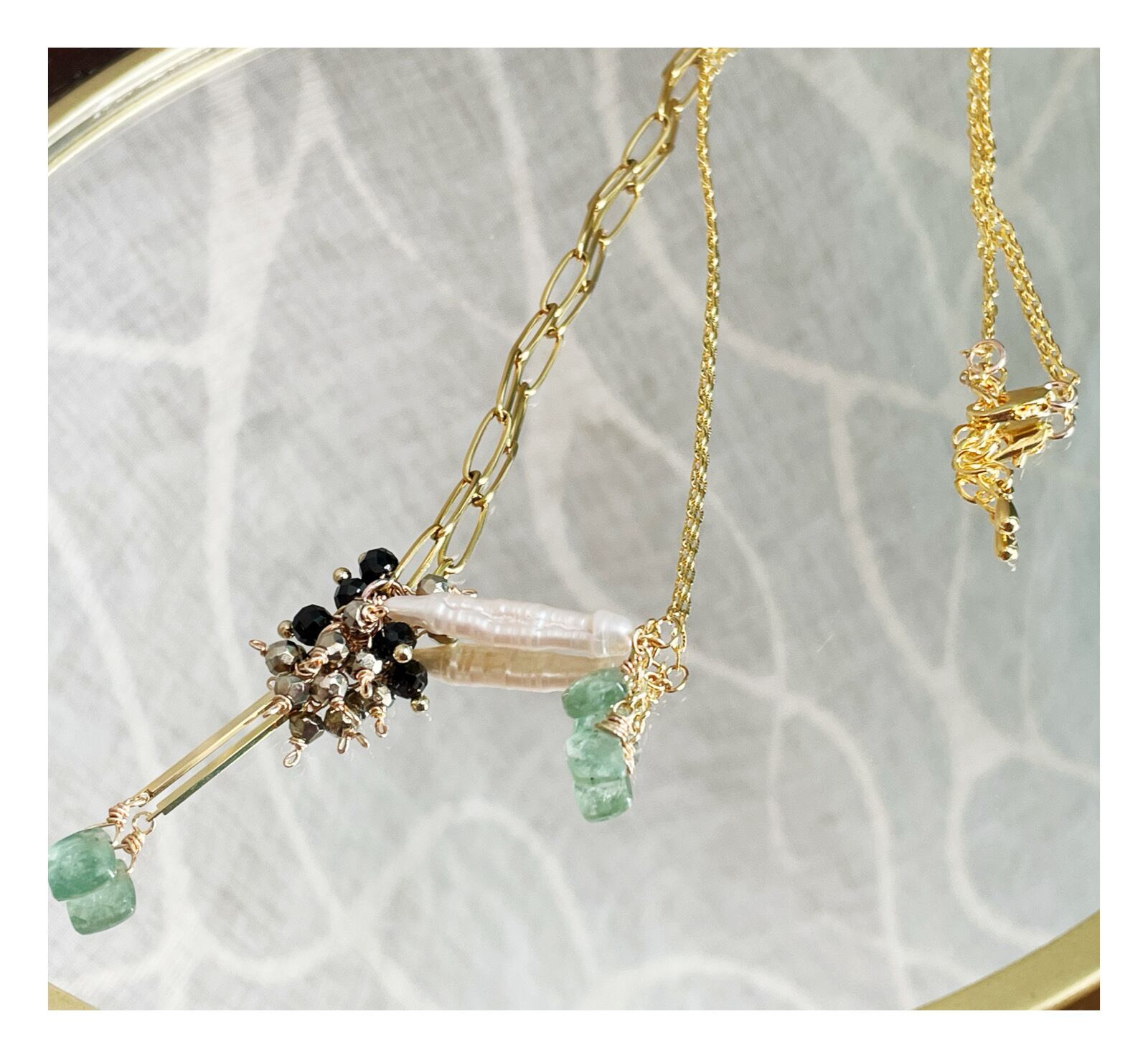 ーパール、グリーンカイヤナイト、ゴールデンパイライト、ブラックスピネル、16KGP