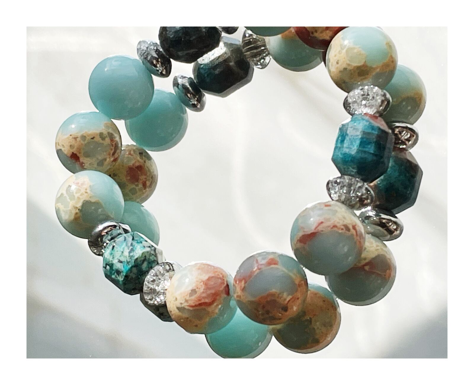 ーガラスビーズ、ジャスパービーズ、クリソコラ、アパタイト