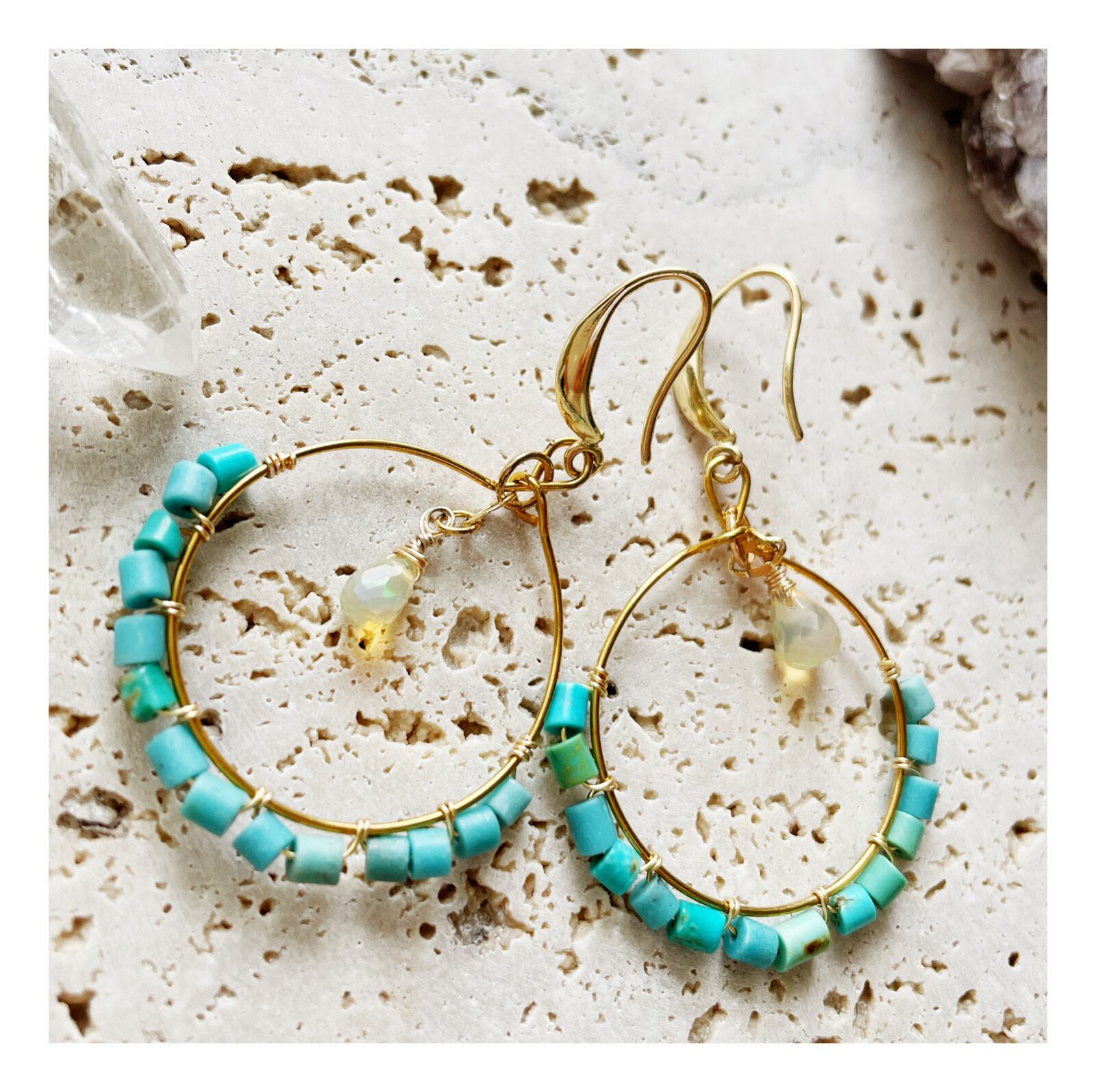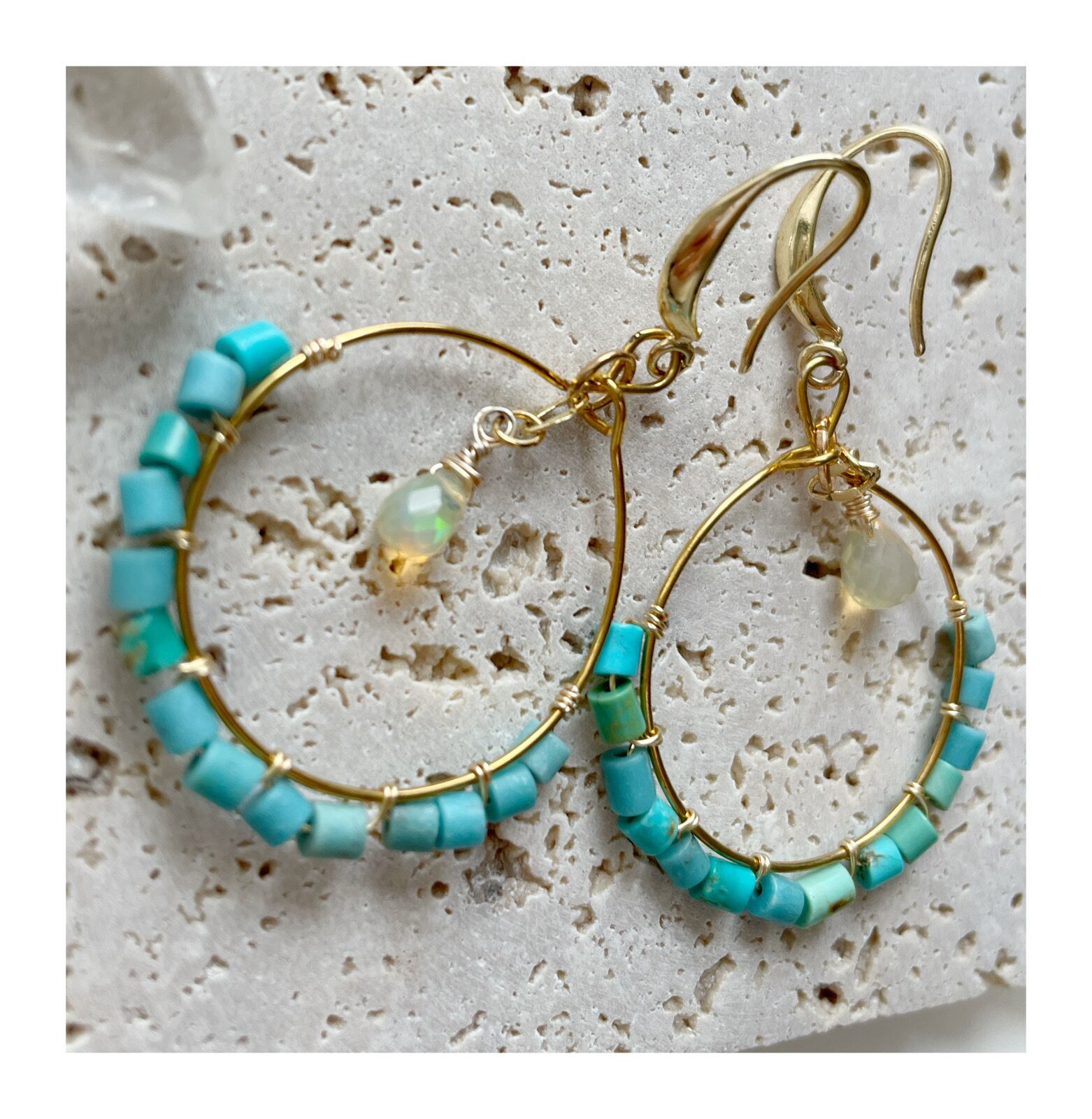 ターコイズと遊色が綺麗に映えるオパールの組み合わせ。